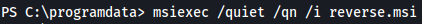 msiexec /quiet /qn /i reverse.msi