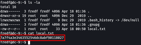 Enumerando en el directorio del usuario "fredf" encontramos la flag local.txt.