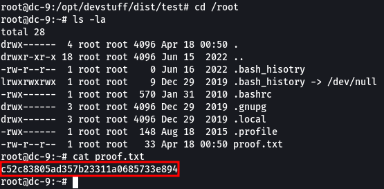 Ya tenemos privilegios máximos dentro de la máquina objetivo. Ahora a por la flag proof.txt para finalizar la resolución.