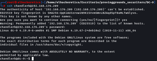 Había tres credenciales válidas que funcionaban con SSH, así que simplemente usamos SSH como usuario de chandlerb.