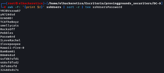 awk -F: '{print $2}' sshUsers | sort -r | tee sshUsersPassword