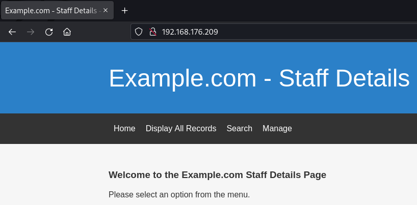 Se está ejecutando un servidor Web en la máquina objetivo. Vamos al navegador para ver el contenido del sitio Web.