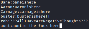 Los usuarios del sistema son rob, abner y penguin. El usuario rob coincide con el que encontramos en la base de datos anterior. Vamos a tratar de iniciar sesión en el sistema con este usuario.&#x20;