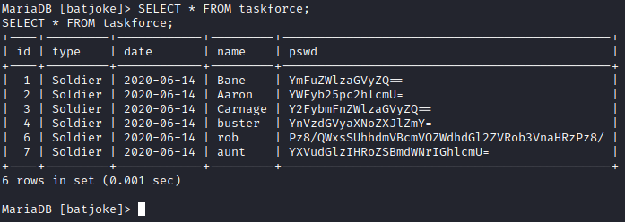 Copiamos estas credenciales a un archivo y desciframos los hashes de las passwords. Estos hashes están cifrados en base64.