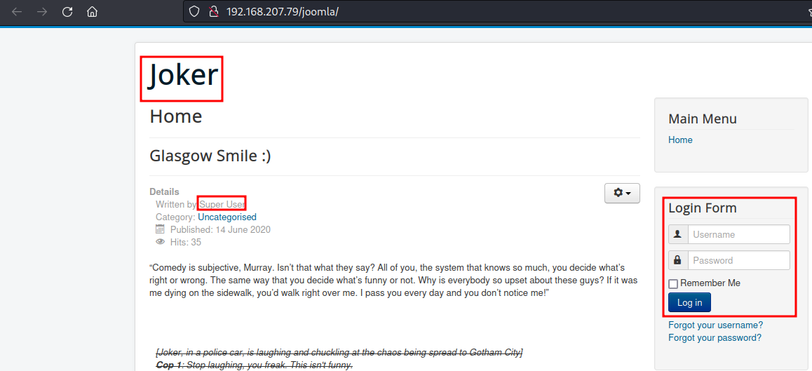 Después de comprobar todas las credenciales, determinamos que las credenciales correctas son **joomla:Gotham**.